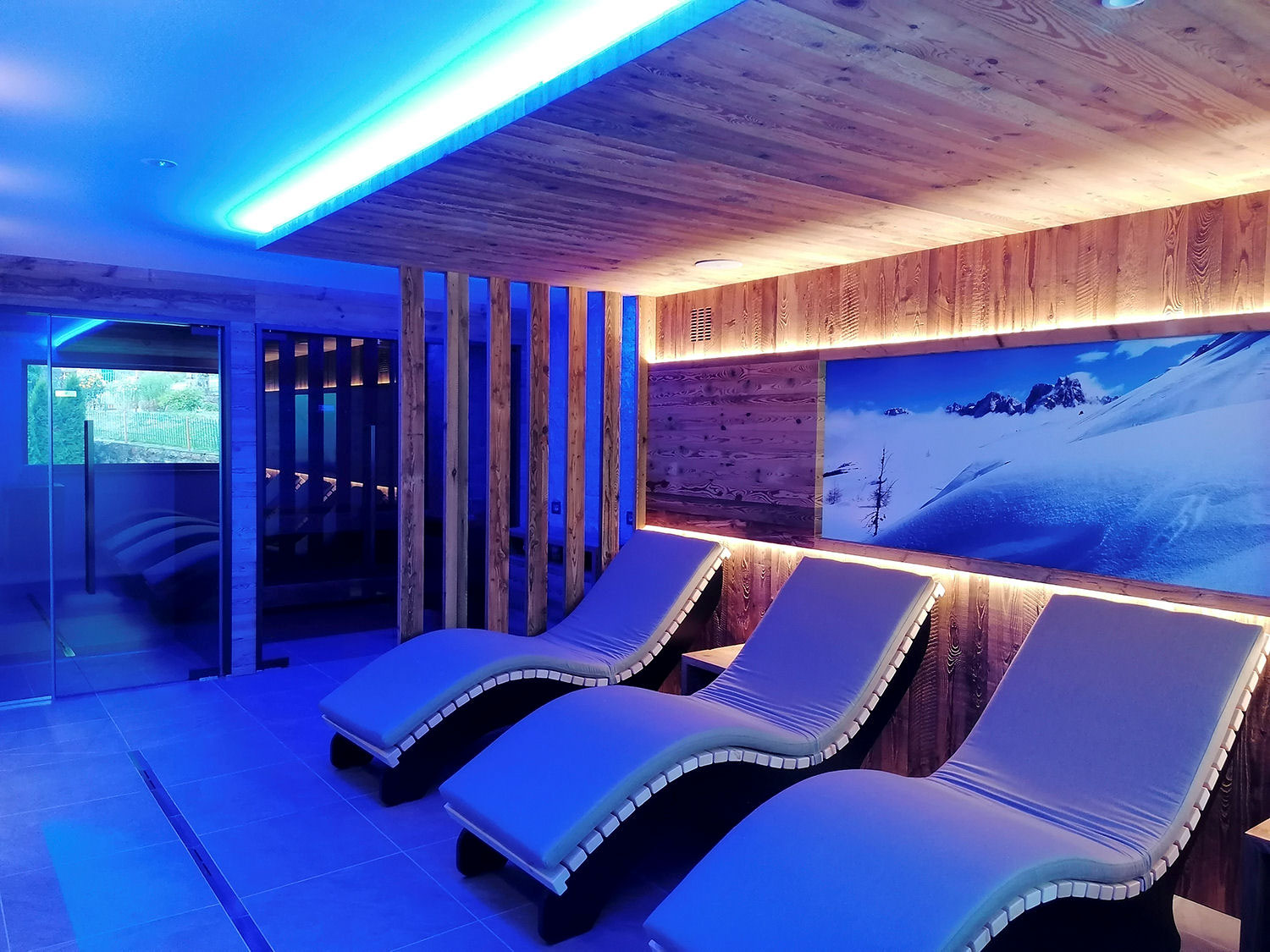 L’area wellness è dotata di sauna, bagno turco, docce emozionali, cascata di ghiaccio e vasca idromassaggio all'aperto.